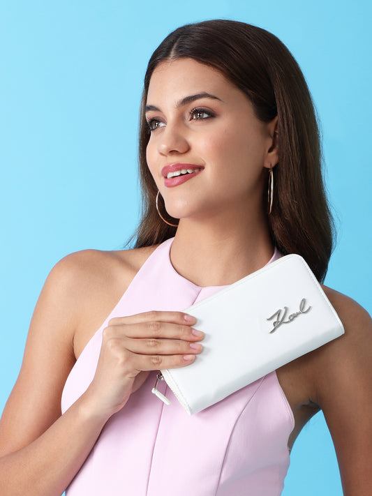 Lagerfeld Paris White Zip-Around Wallet