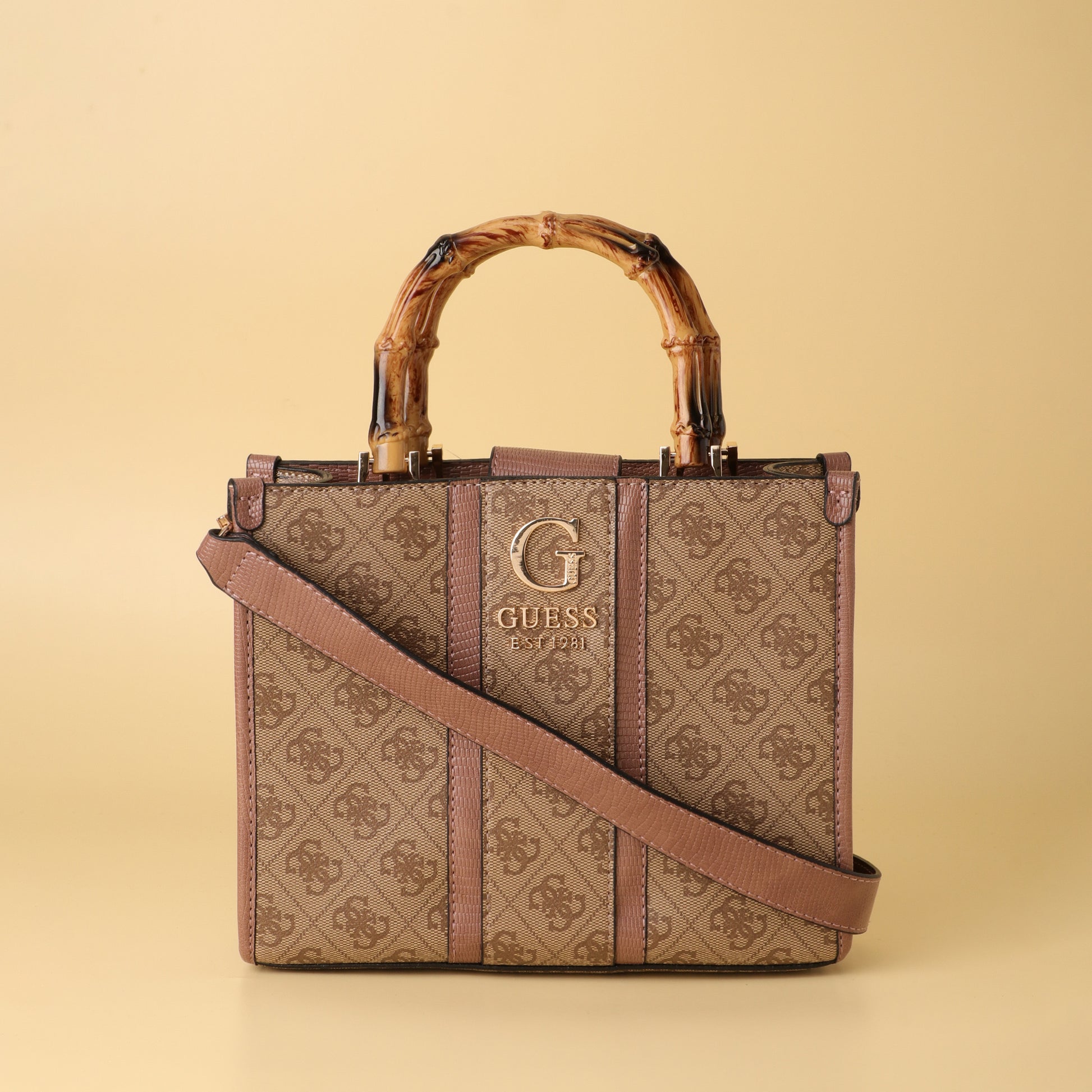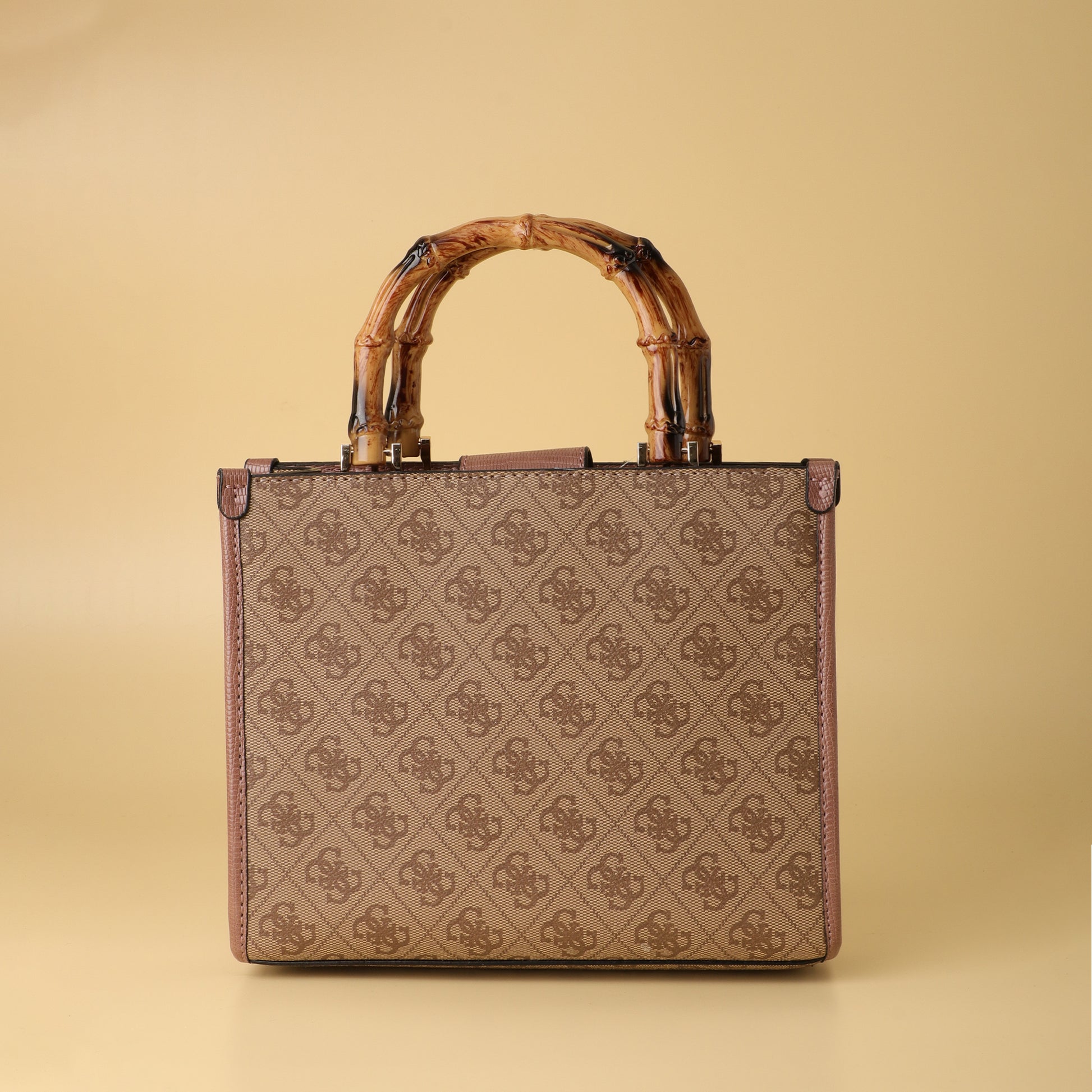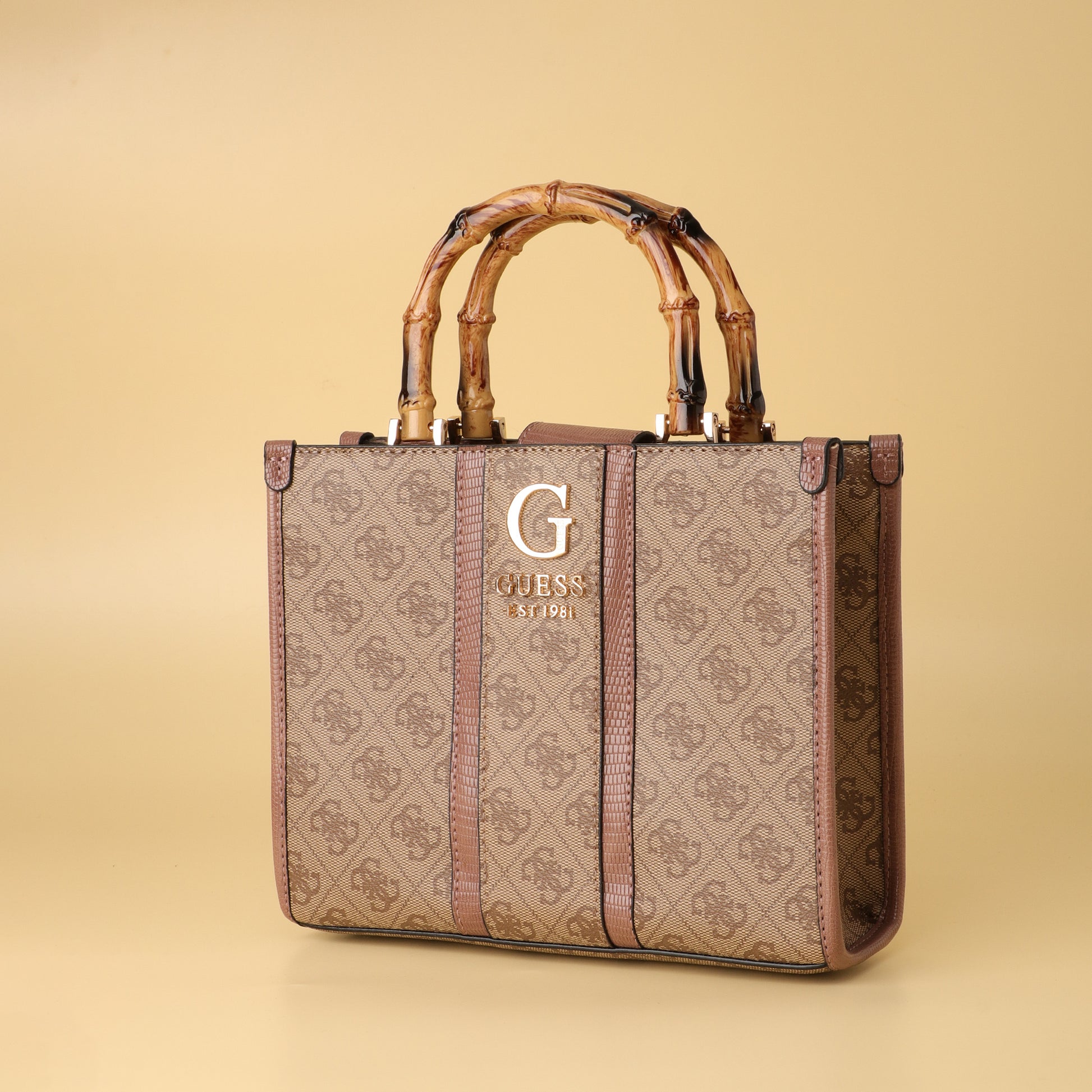 Step into effortless sophistication with the Guess Bamboo Handle Monogram Tote. Designed with the brand’s iconic all-over monogram canvas and accented by rich faux-leather trims, this tote exudes timeless appeal. The standout feature is its bamboo-inspired handles, adding a touch of natural elegance. Spacious yet structured, it comes with a detachable shoulder strap for versatile styling.