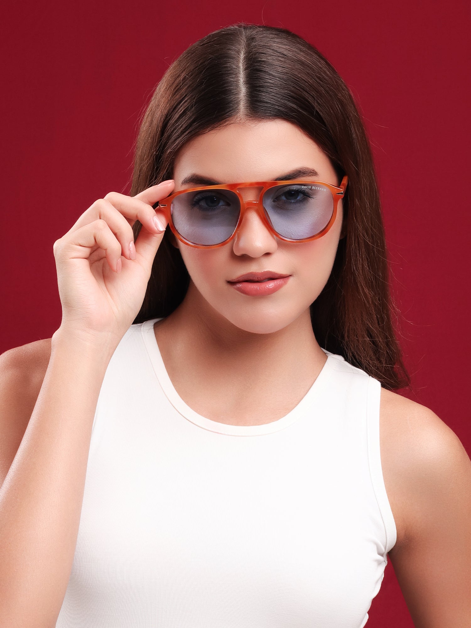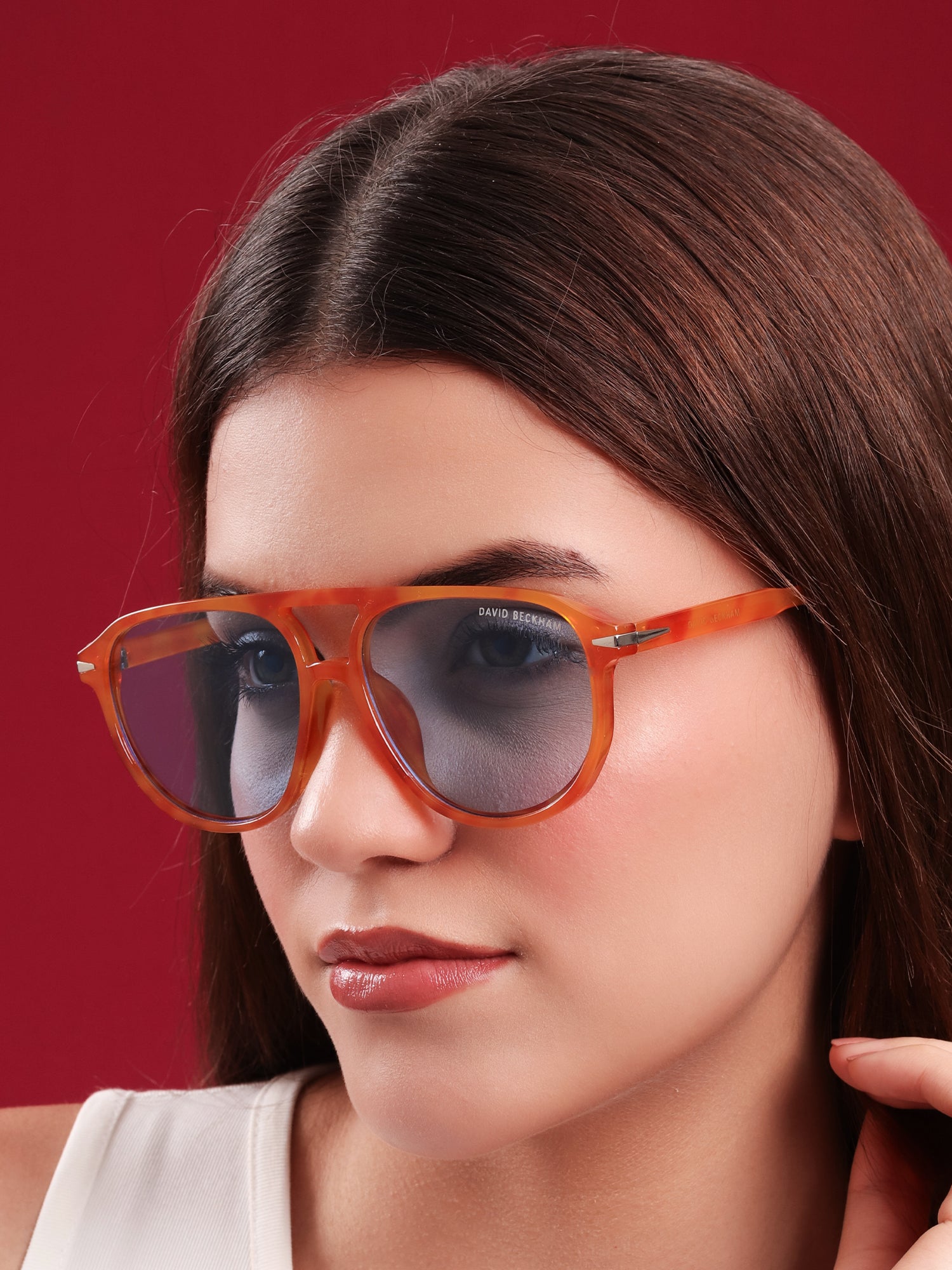 Bring effortless cool to your look with these David Beckham Amber Blue Aviators. Featuring a translucent amber acetate frame paired with sky-blue lenses, these shades blend modern confidence with a retro edge. Lightweight yet bold, they’re designed for those who like to keep their style relaxed but striking.