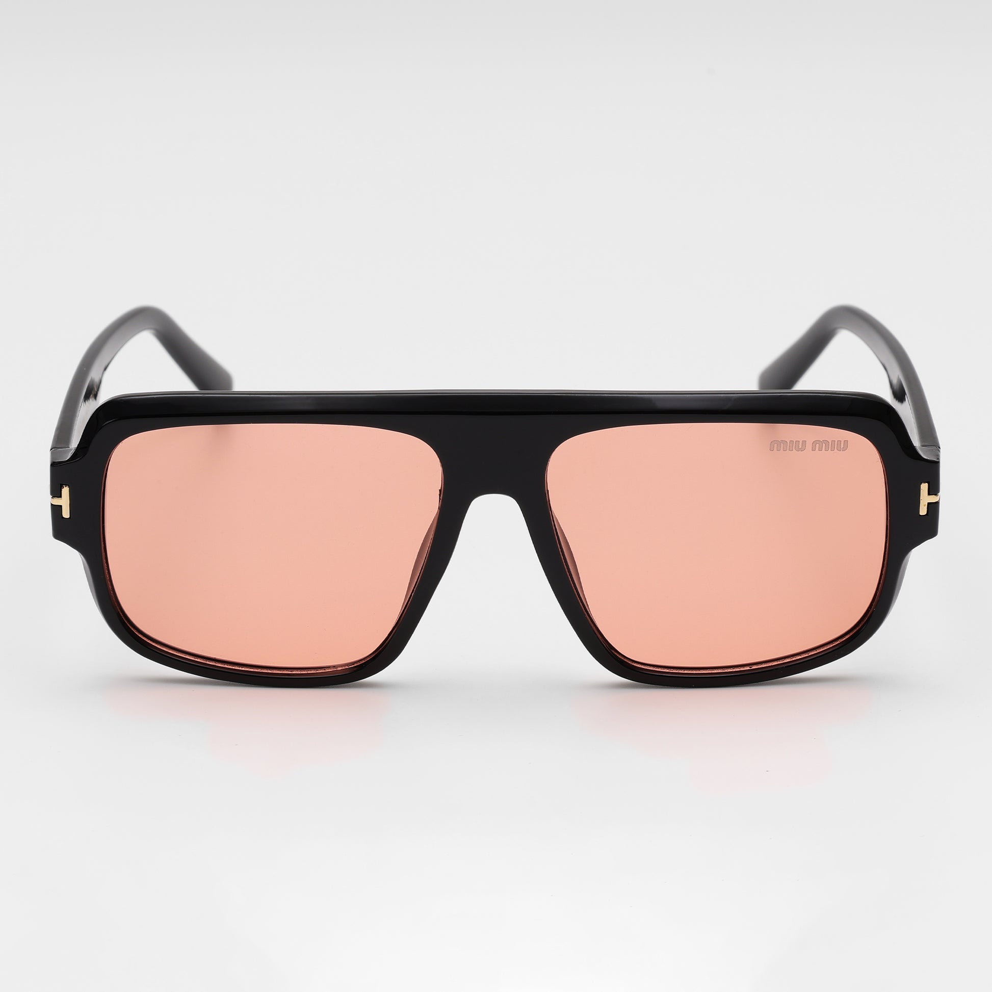 Miu Miu Black Navigator Pink Lens Sunglasses balance retro-cool and modern edge with their oversized, squared navigator frames in glossy black acetate and stylish blush pink lenses. Sleek gold logo hardware on the temples and a soft pink Miu Miu case bring a signature designer finish that’s perfect for city days or holiday escapes.