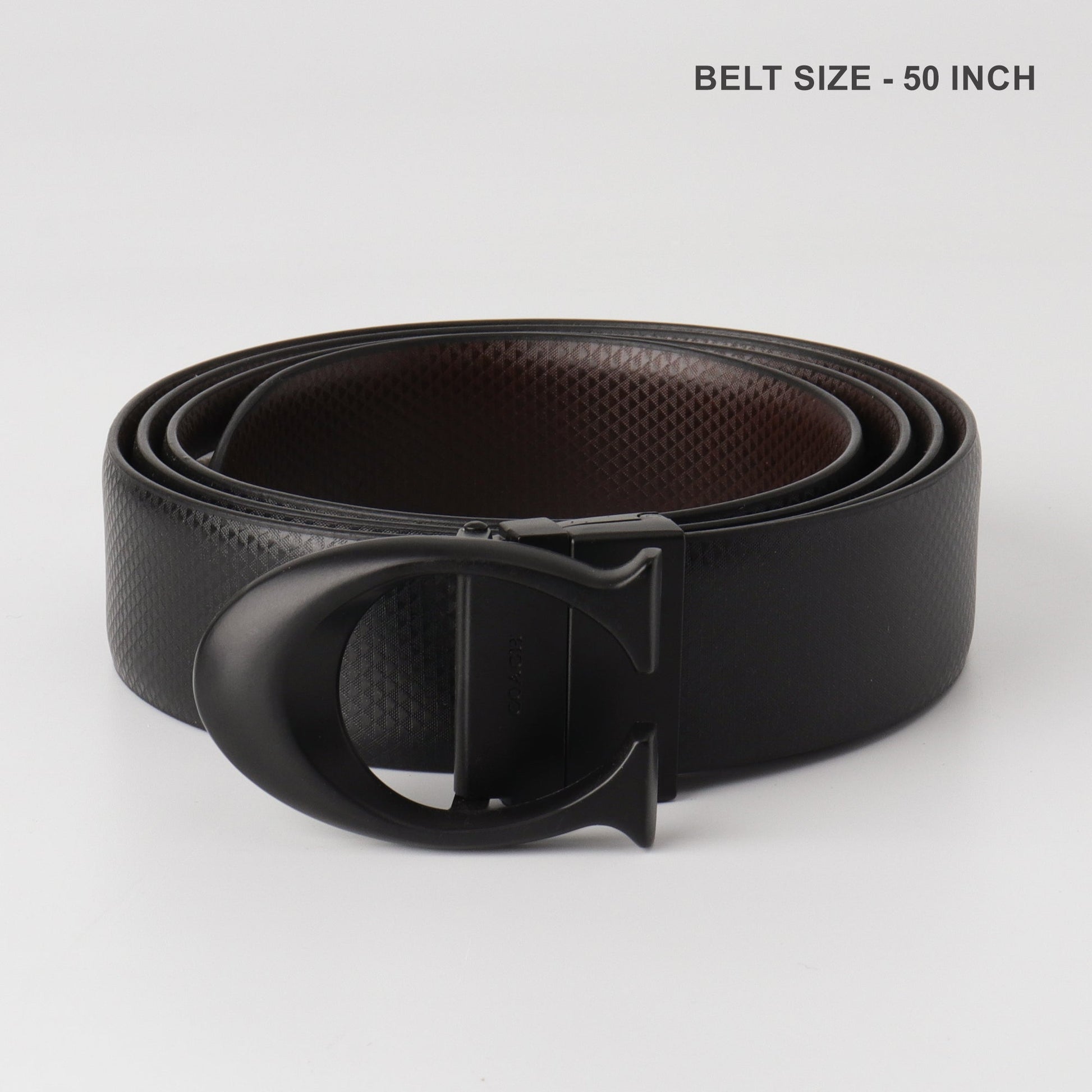 Rendered in deep matte-black pebbled leather, this belt showcases an oversized “C” emblem buckle in matching matte finish. Its tonal hardware and refined texture make it an ultra-versatile, statement-free accessory.