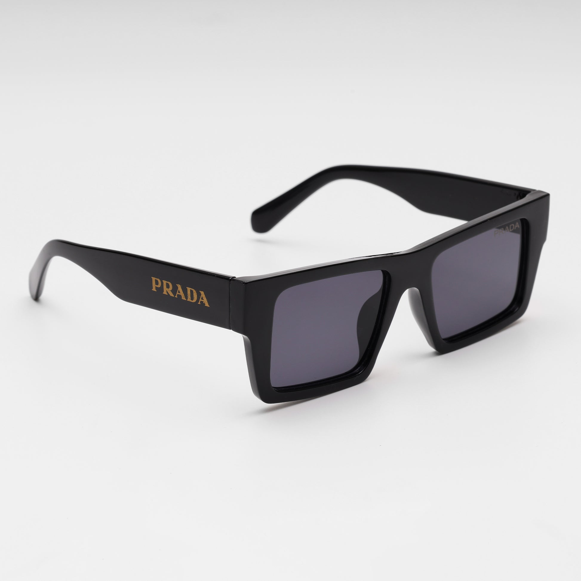 Prada Classic Black Rectangle Sunglasses exude bold, refined confidence with sharp black acetate frames, grey-tinted lenses, and the signature gold Prada logo on each wide arm. These shades put a modern spin on clean vintage lines, perfectly presented in an iconic Prada clamshell case.