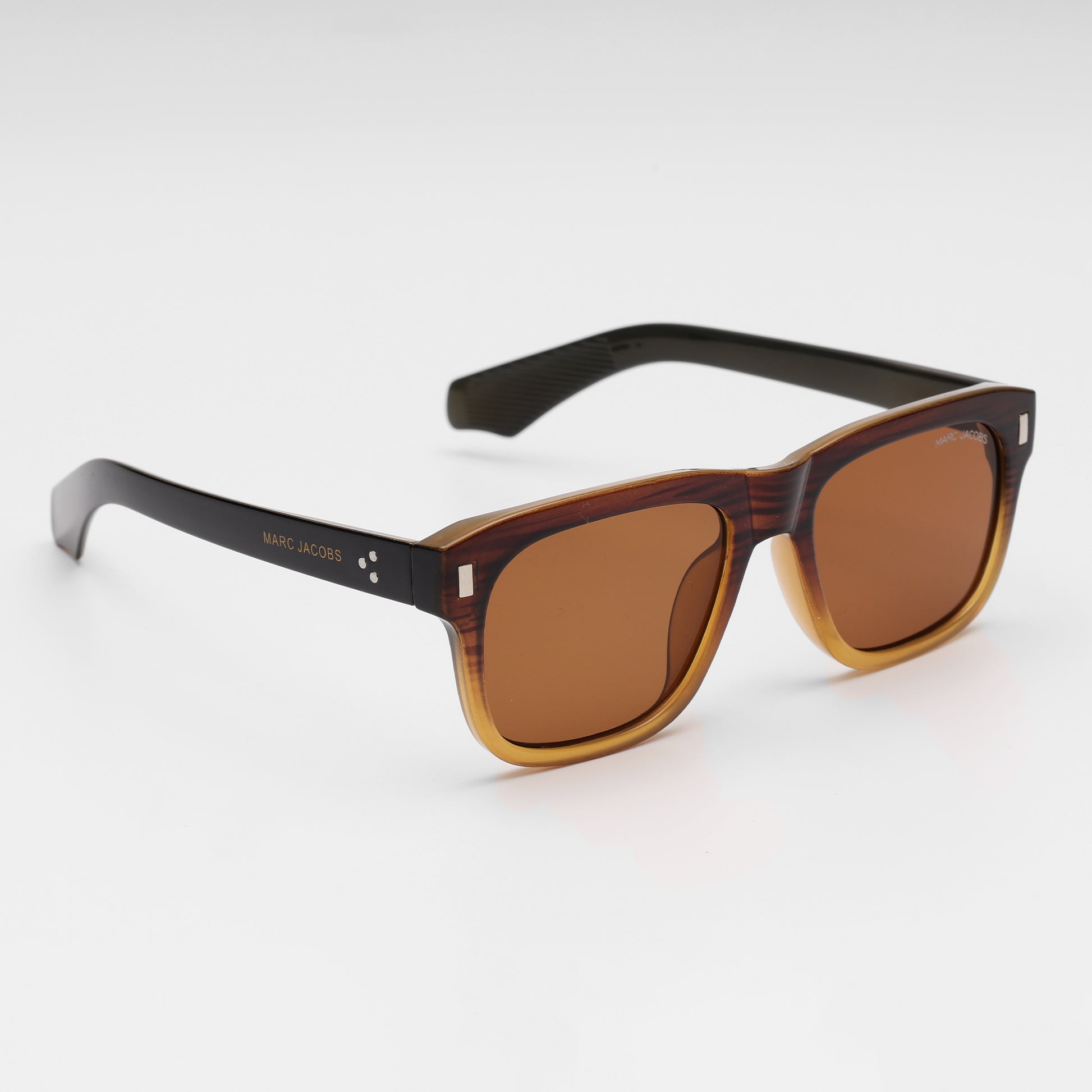 The Marc Jacobs Classic Havana Brown Square Sunglasses feature a sophisticated gradient brown frame that transitions to honey at the base, paired with vintage-inspired caramel lenses. Elegant logo details and metal rivets on the temple enhance its timeless, cosmopolitan vibe, and the included white Marc Jacobs case offers designer polish wherever you go.