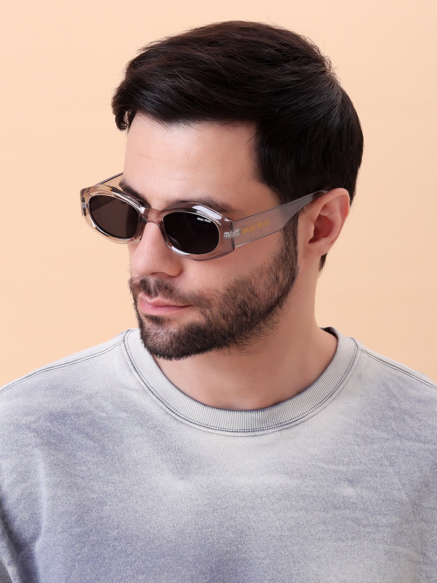 Pair these crystal frames with crisp white, pastel, or bold reds for a fresh, editorial finish. They make a statement with a sleek ponytail, silk scarf, and structured bag, or keep it casual with graphic tees and denim for everyday attitude. The transparency of the frame lets these glasses shine with both simple and maximalist jewelry—just add a pop of lipstick for instant Miu Miu flair at brunch, rooftop parties, or city outings.