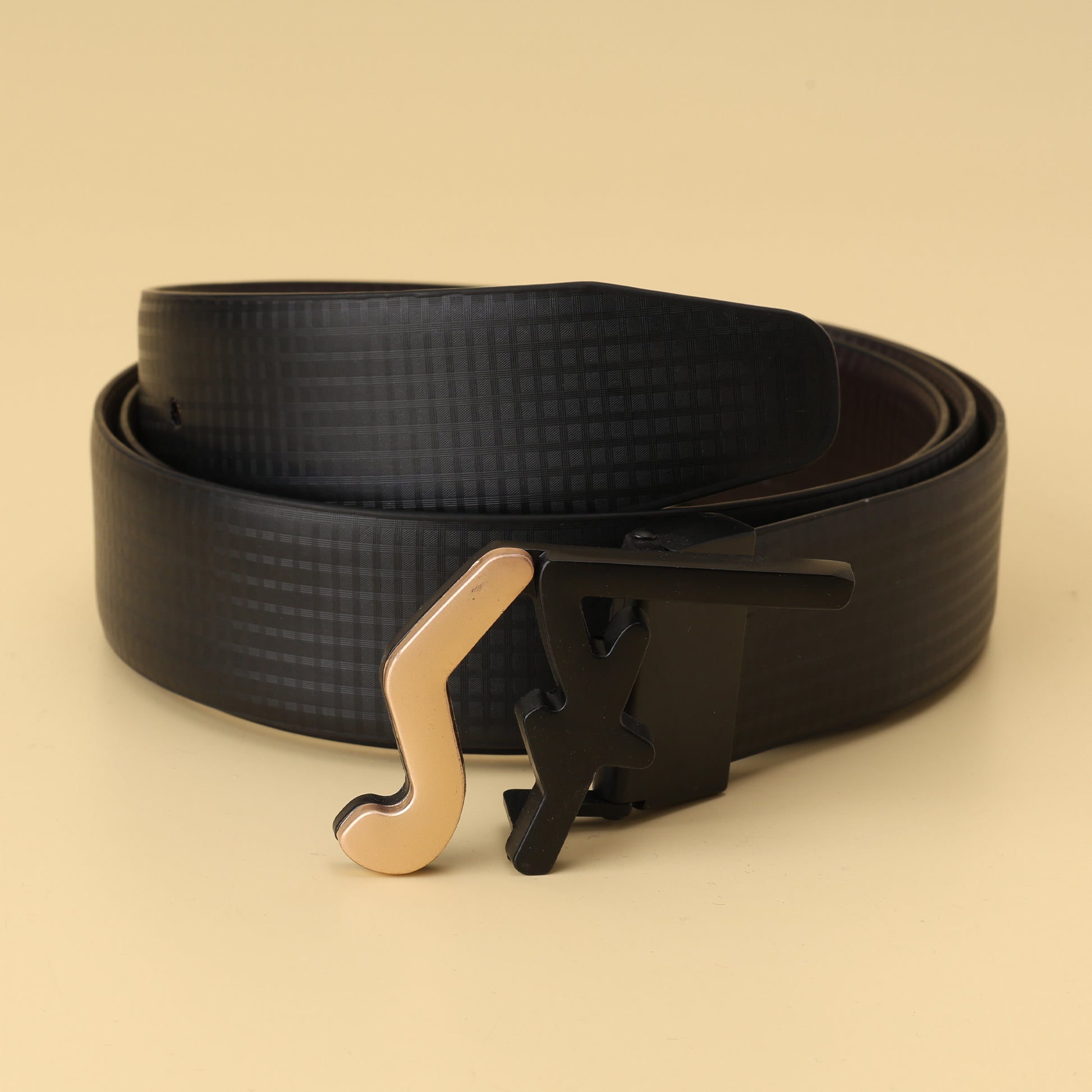 This Salvatore Ferragamo–inspired belt blends refined craftsmanship with a touch of artistic flair. The textured black strap is crafted from premium vegan leather, giving you a luxurious finish with an ethical twist. Its striking dual-tone buckle, featuring a sleek black frame with a soft gold accent, adds a sophisticated statement that feels modern, stylish, and effortlessly upscale.
