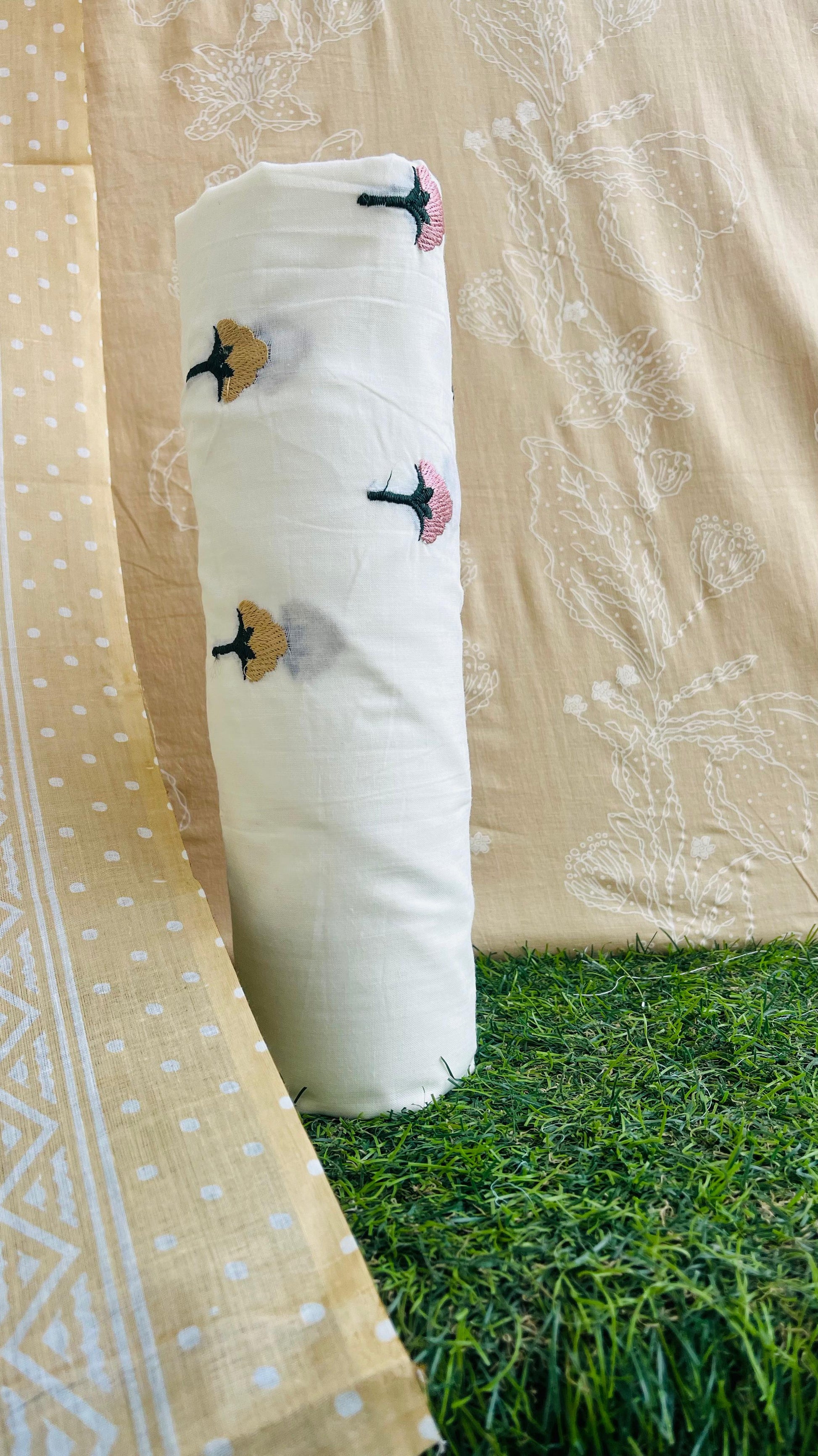 Step into a world of timeless beauty with our Golden Elegance unstitched suit, featuring a harmonious blend of cream and beige hues with subtle golden patterns. This suit is adorned with delicate embroidery, making it a perfect choice for both casual and festive events.