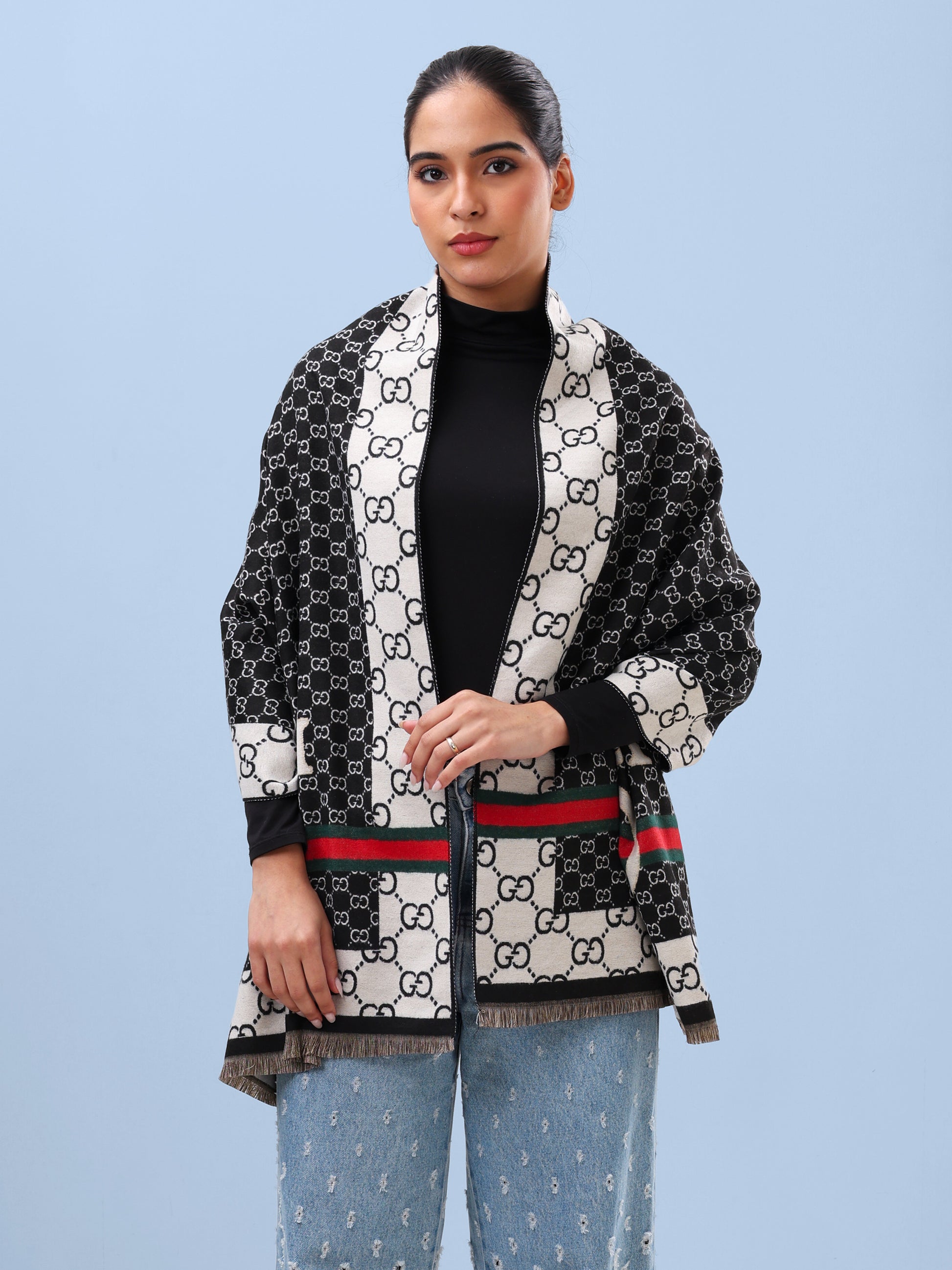 This scarf is all about quiet confidence. The classic monogram pattern paired with bold stripe detailing gives it that instantly recognisable, polished look. Soft to the touch and easy to drape, it adds structure and style without trying too hard. It’s the kind of piece you reach for when you want your outfit to feel complete.