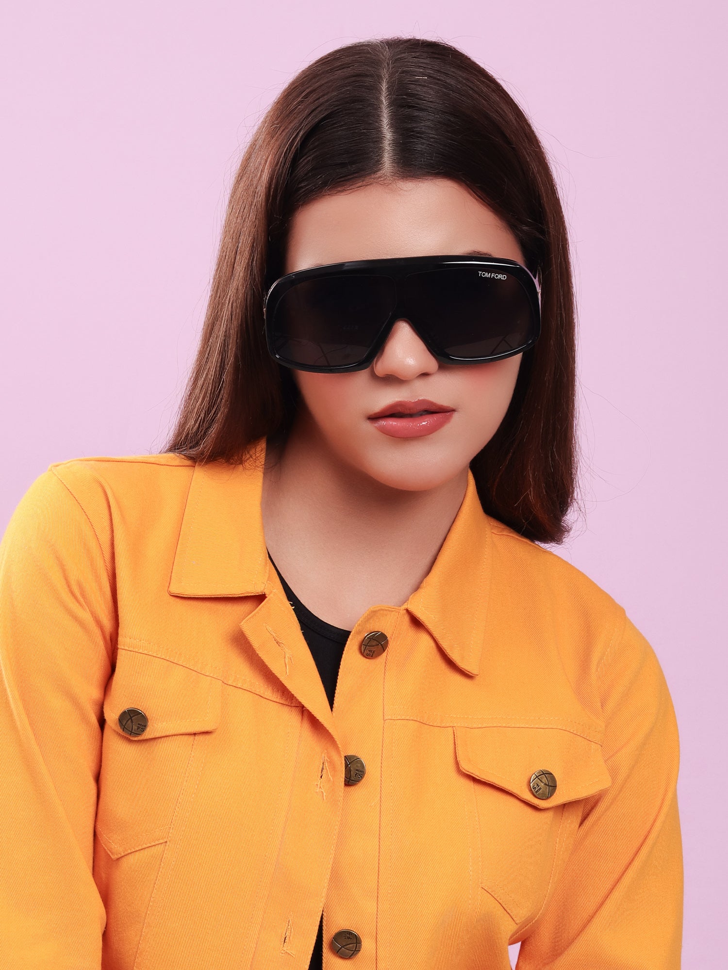 Tom Ford Iconic Shield Sunglasses redefine modern luxury with their bold, oversized shield shape in glossy black acetate and signature gold “T” hardware. The dramatic single-lens design provides a seamless wraparound fit and next-level UV protection, striking the perfect blend of avant-garde edge and everyday wearability. Understated branding and Italian craftsmanship complete this powerhouse statement piece.