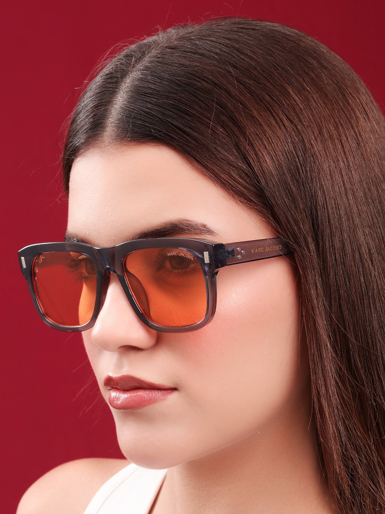 Channel instant retro-cool with Marc Jacobs Amber Vision sunglasses, featuring contemporary square frames in smoky grey acetate and standout amber-hued lenses. The logo-embossed temple and subtle metal accents pull the look together, while a stylish Marc Jacobs case keeps your new favorites safe and sleek wherever you go.