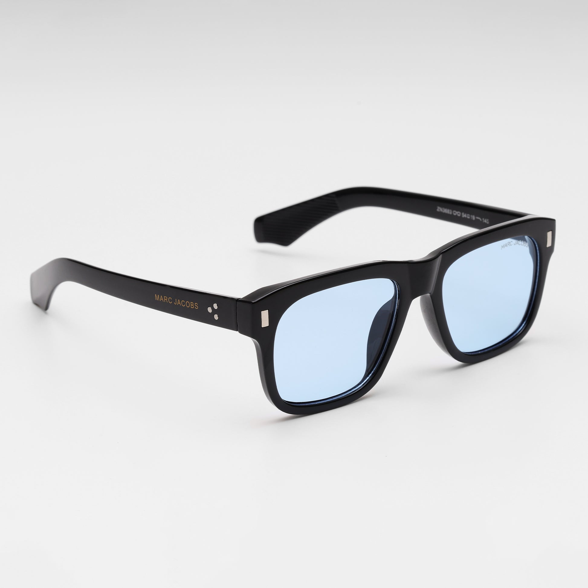 Make a statement with Marc Jacobs Classic Blue Lens Square sunglasses, blending a timeless black acetate frame with bold, icy blue lenses. The signature logo detail on the temple delivers a note of modern luxury, while a structured white Marc Jacobs case keeps your eyewear safe and polished between outings.