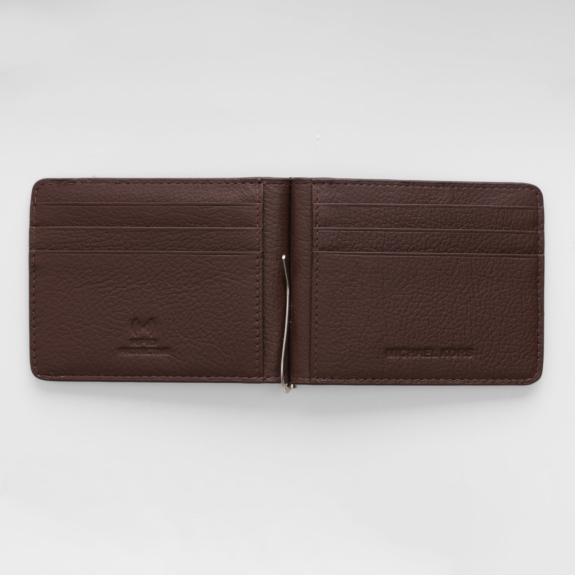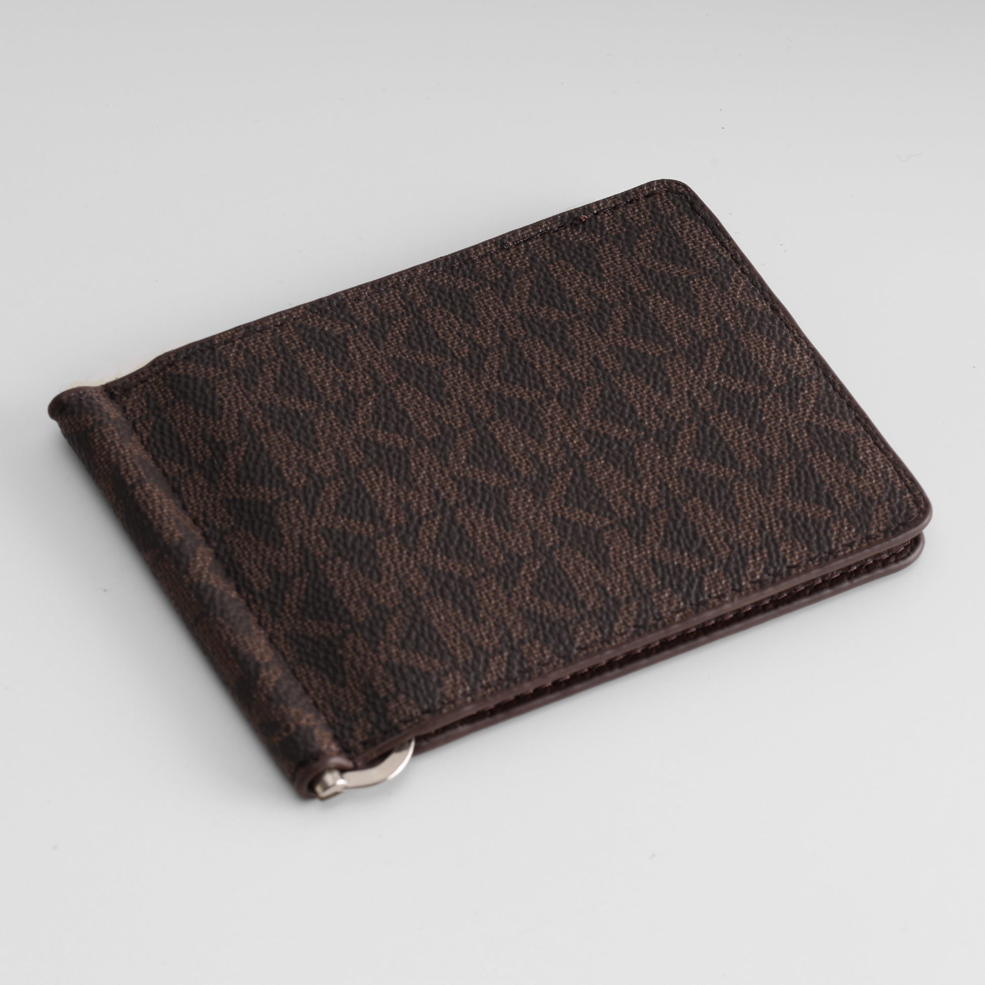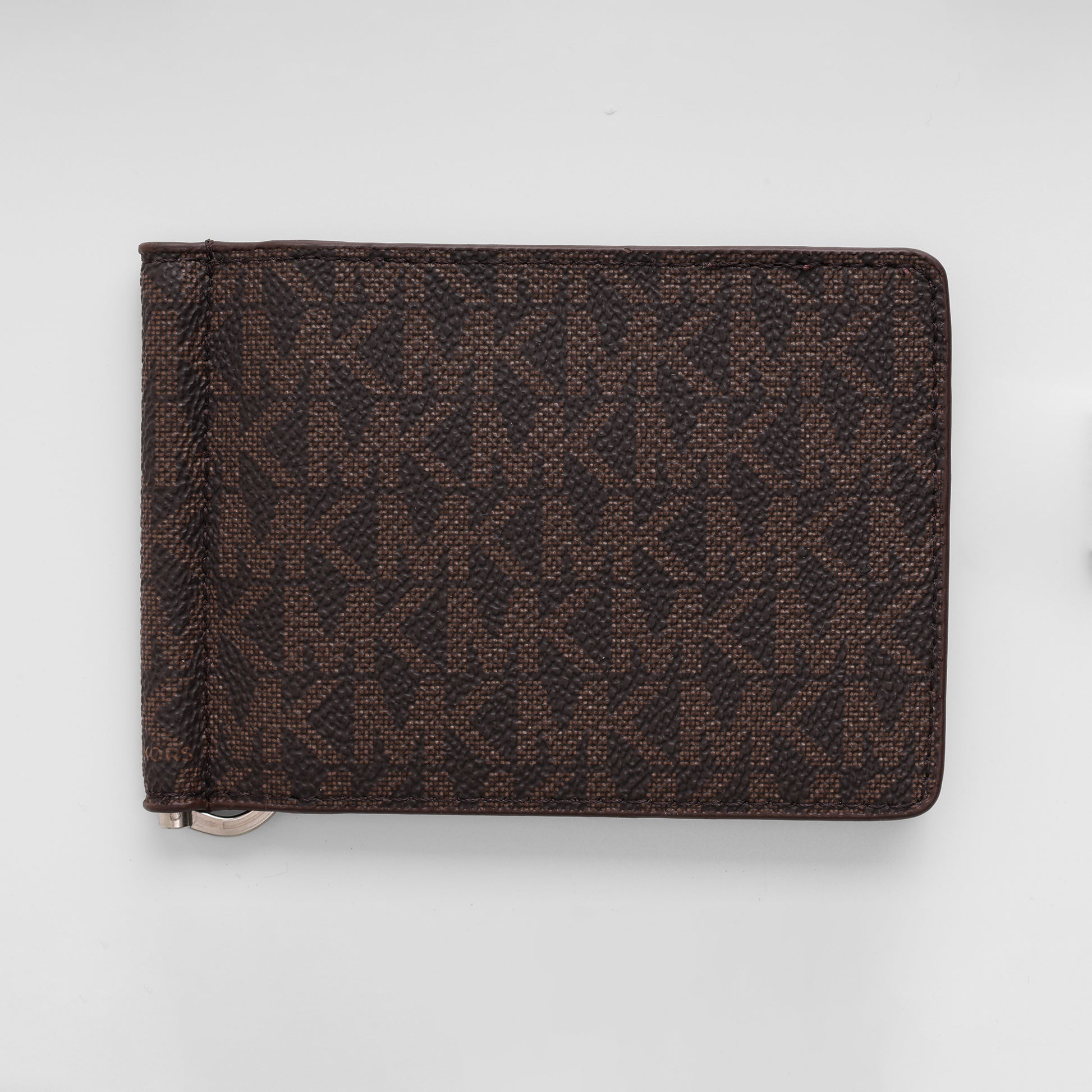 The Michael Kors Signature Monogram Leather Wallet blends sophistication and everyday practicality. Crafted from premium coated canvas with the iconic MK monogram, it features a rich brown hue and a sleek, compact profile. Inside, smooth leather lining offers multiple card slots and a secure money clip—perfect for those who value refined minimalism without compromising on function.