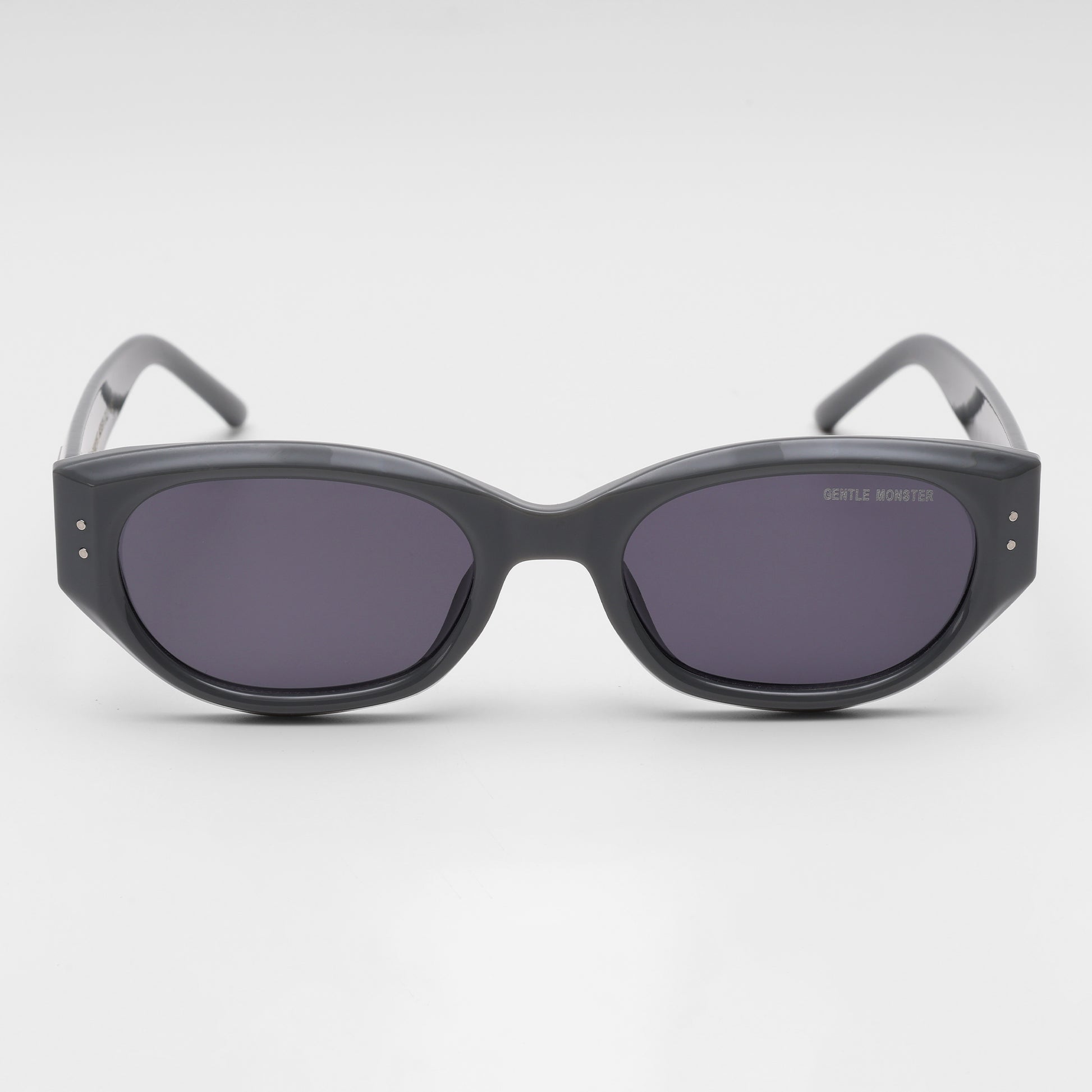 Discover city-smart style with these Gentle Monster cat-eye sunglasses in slate gray, featuring bold sculpted frames and deep cool-toned lenses. Look closely for the metallic and gold logo details on the arms—proof of their high-end finish. Designed to offer both attitude and versatility, each pair comes with a sturdy Gentle Monster branded case for modern protection.