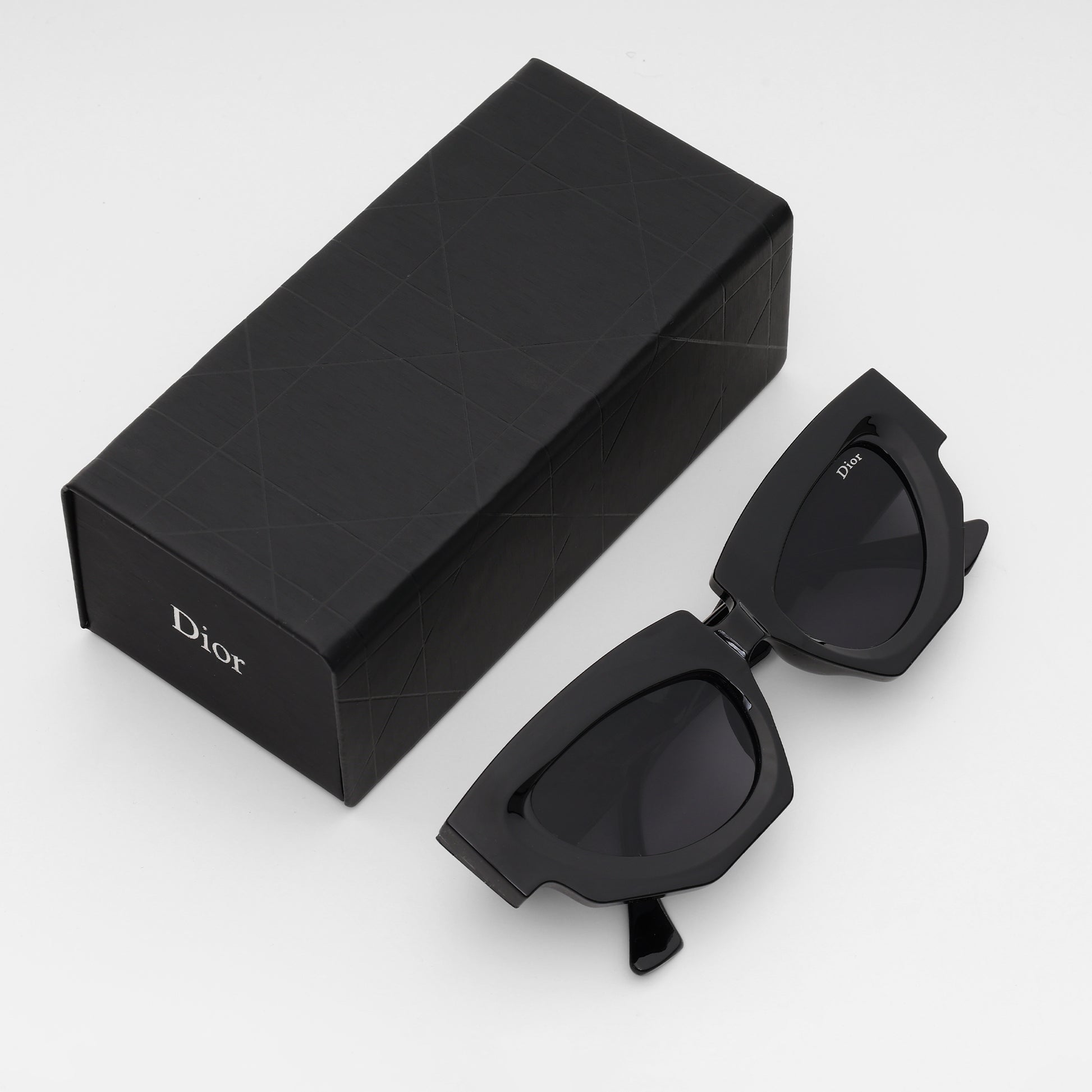 Command attention with the Dior “Noir Authority” Cat-Eye Sunglasses. These sharp black frames pair a geometric cat-eye silhouette with deep, smoky lenses and feature the classic “Christian Dior” gold signature at the temple. Timeless with a modern edge, these sunglasses embody effortless elegance and versatile impact for any occasion.
