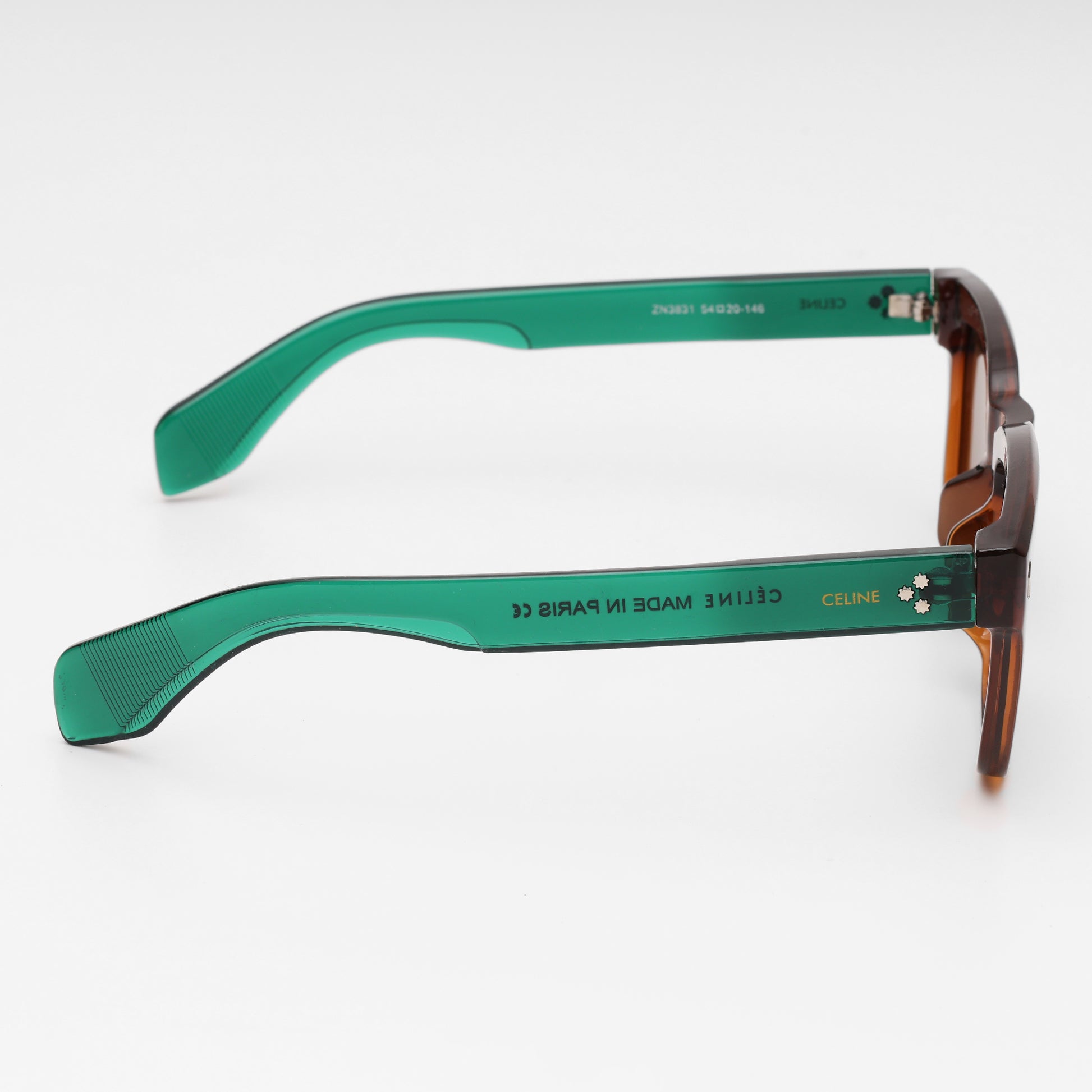 Redefine bold sophistication with Celine’s Havana-Green Statement Sunglasses. Designed in a dual-tone acetate frame — warm Havana brown in front and deep forest green temples — this unisex pair blends artistic contrast with everyday luxury. The brown lenses offer UV protection while adding a warm tint to your look. Finished with the signature Celine Paris logo and arrow detailing, it’s where Parisian minimalism meets playful edge.