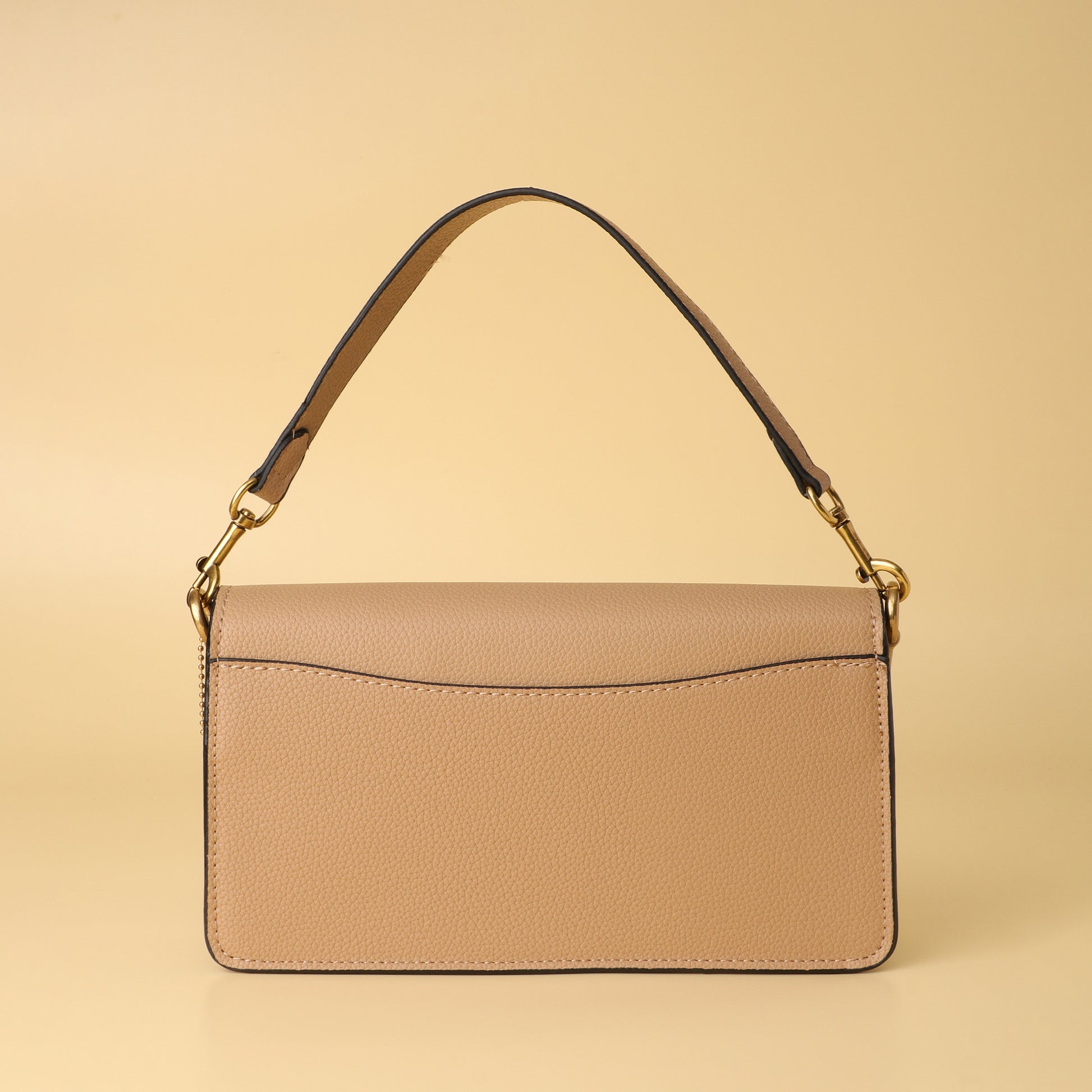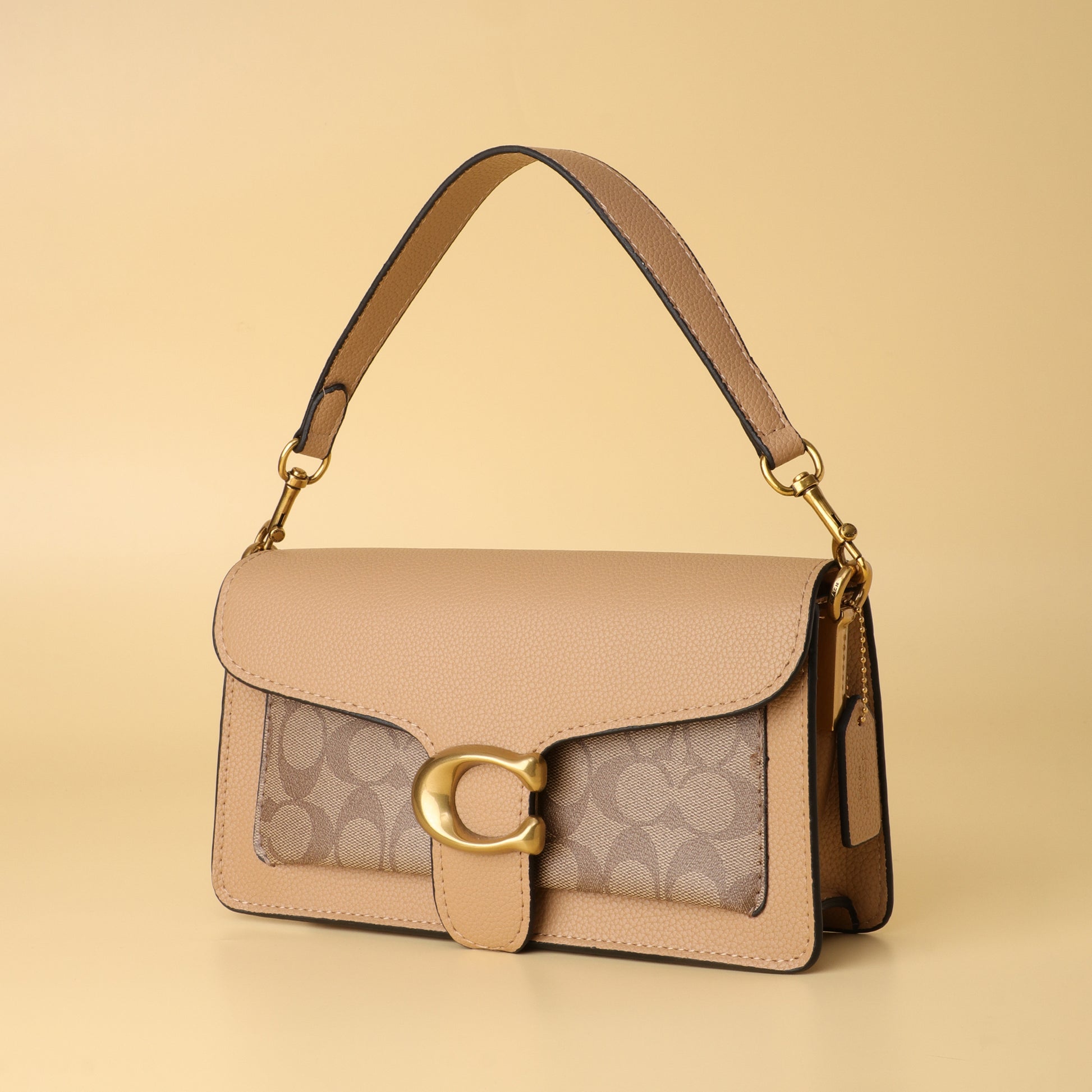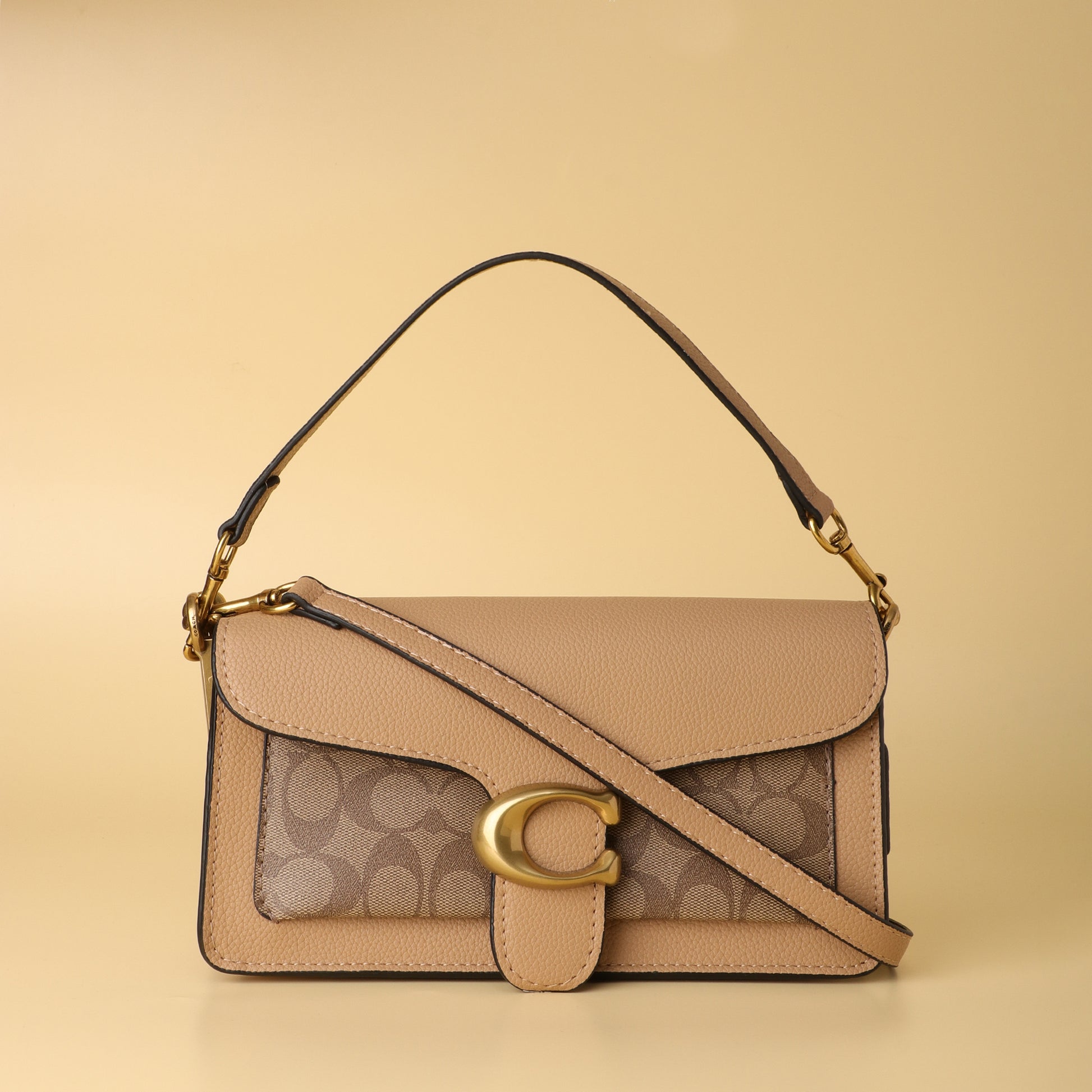 The Coach Signature Tabby Shoulder Bag blends modern minimalism with timeless charm. Crafted in smooth tan leather with the brand’s iconic "C" monogram canvas and finished with a bold gold "C" clasp, this bag is all about understated luxury. The versatile design allows it to be worn with the top handle for a polished look or with the crossbody strap for hands-free ease.