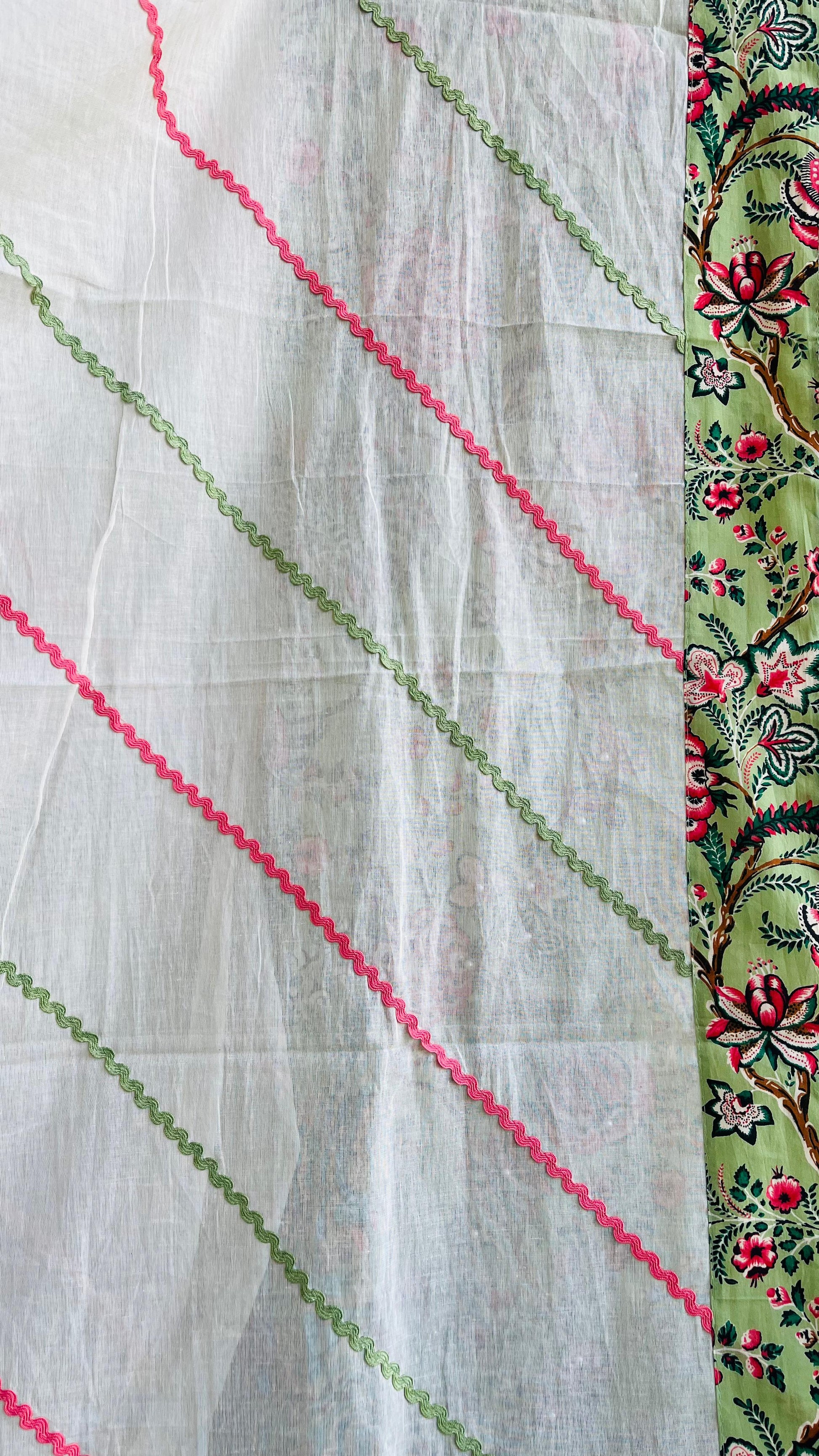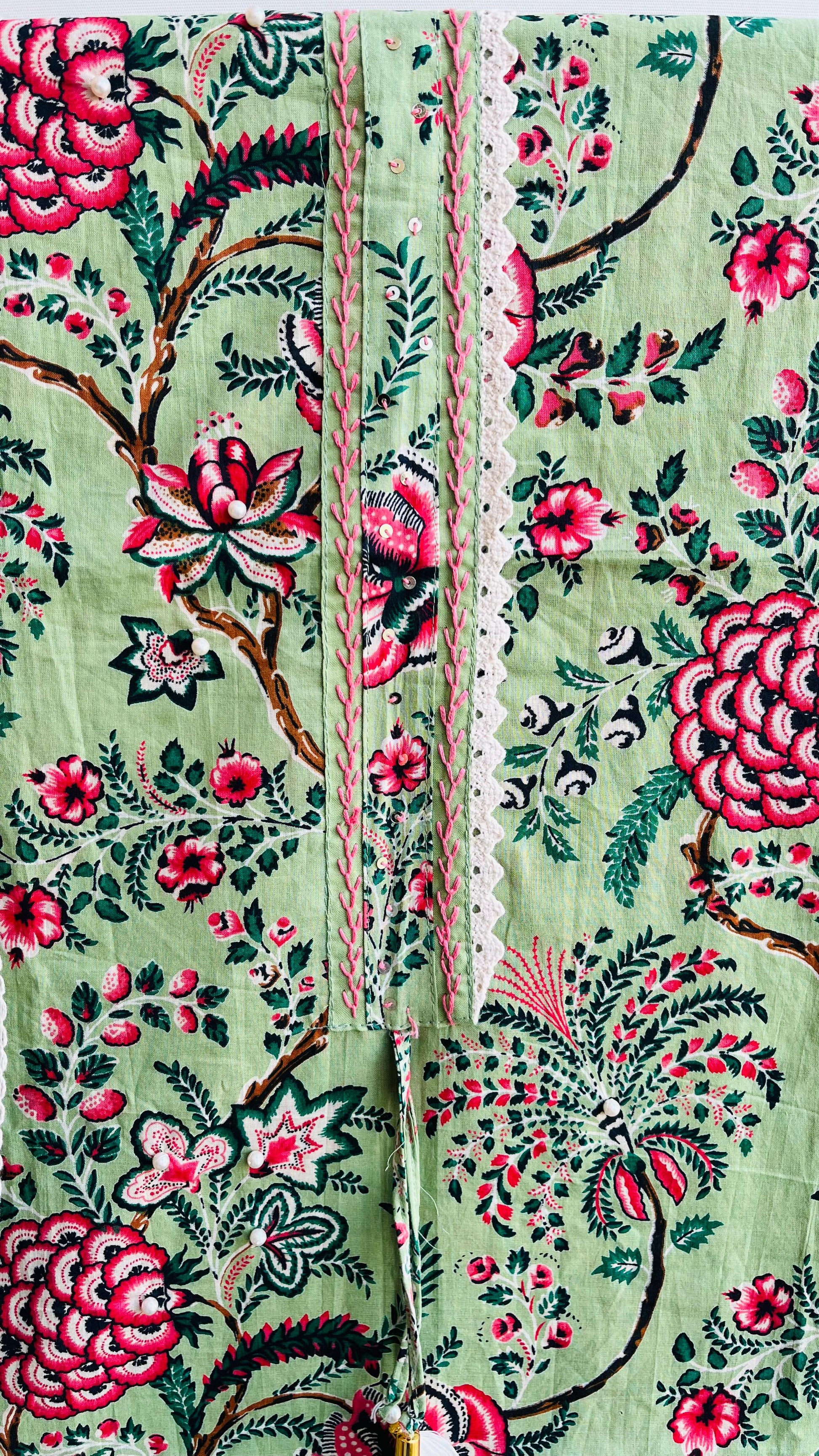 Celebrate the freshness of spring with our Spring Meadow unstitched suit. This delightful piece is adorned with intricate floral patterns in refreshing green hues, creating a vibrant and lively look. The suit includes a lightweight dupatta with complementing pastel stripes.