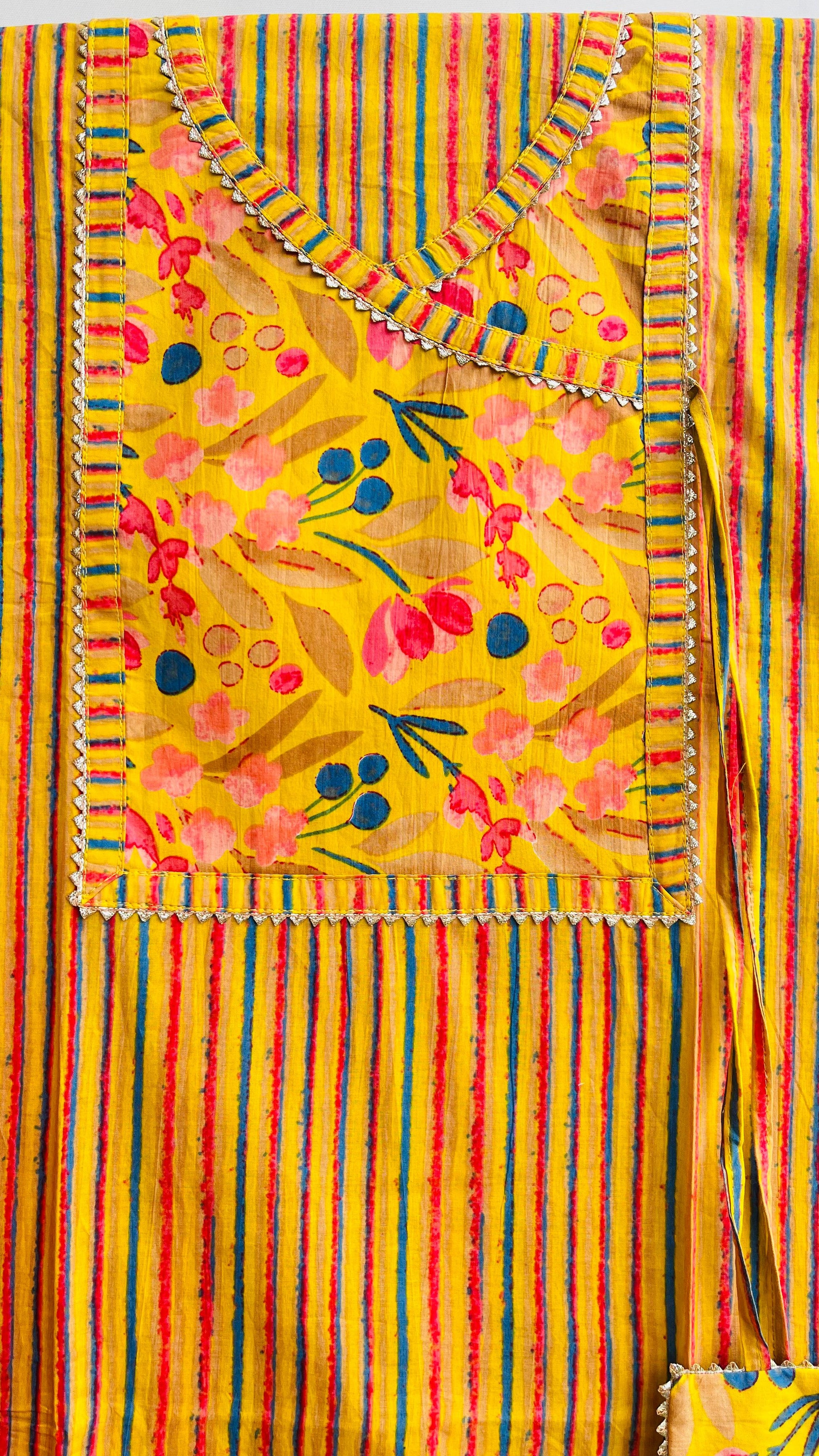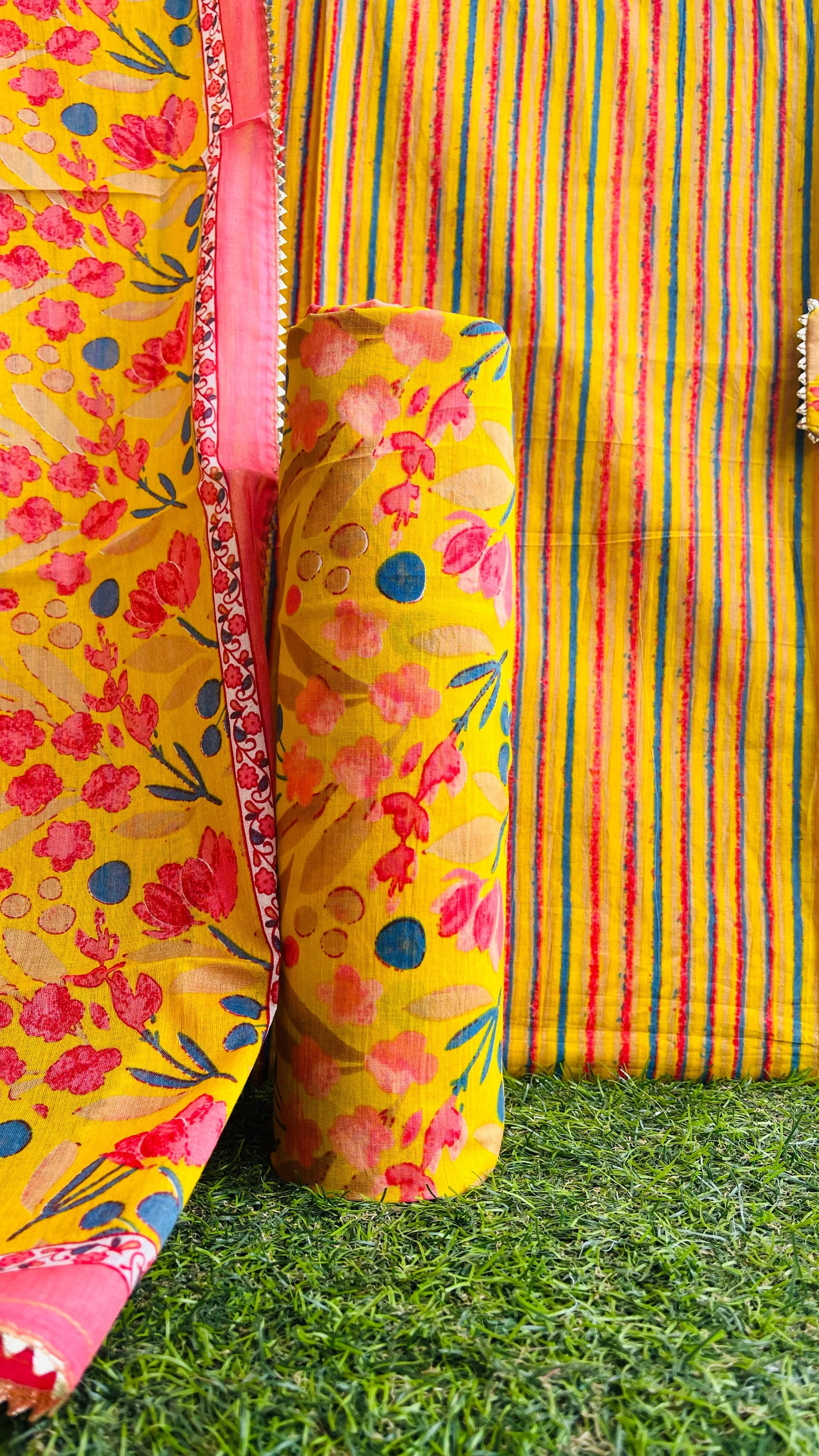 Brighten up your day with our Sunshine Delight unstitched suit, adorned with cheerful yellow and orange floral patterns. This suit is perfect for those who love to make a bold statement with their attire.