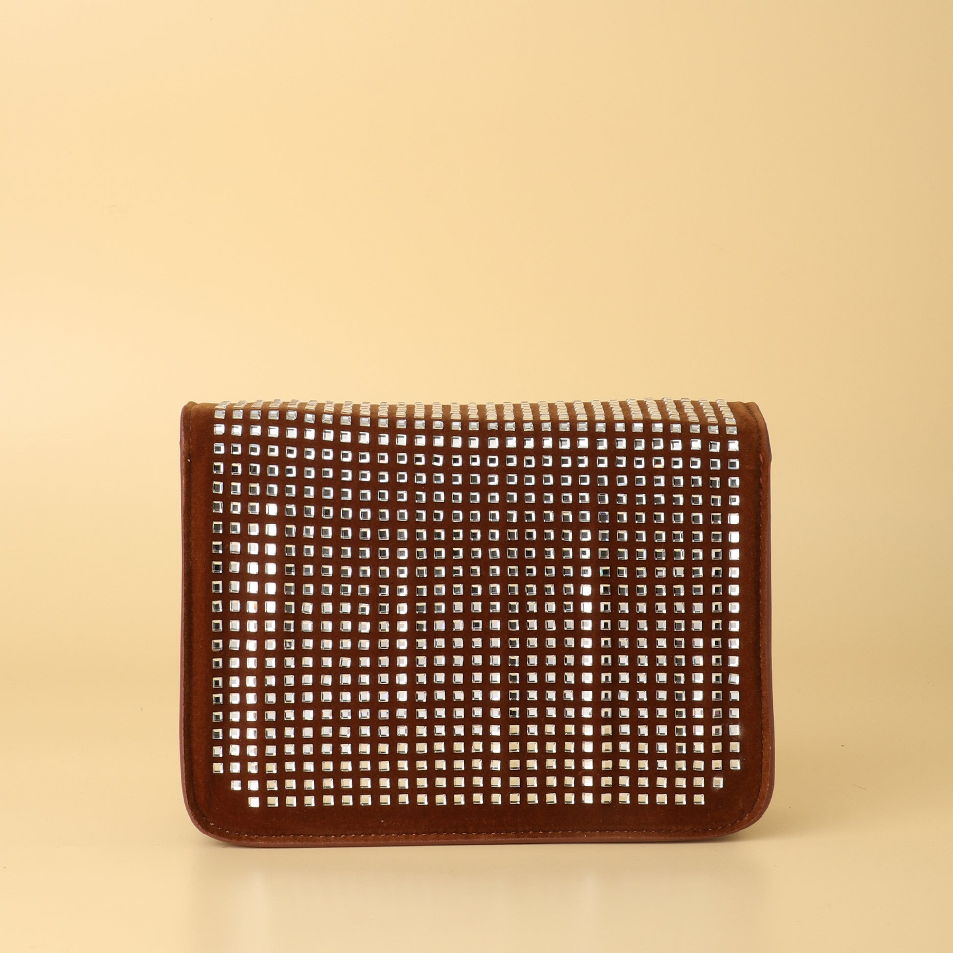 TB Monogram Studded Suede Chain Bag in Chestnut Brown