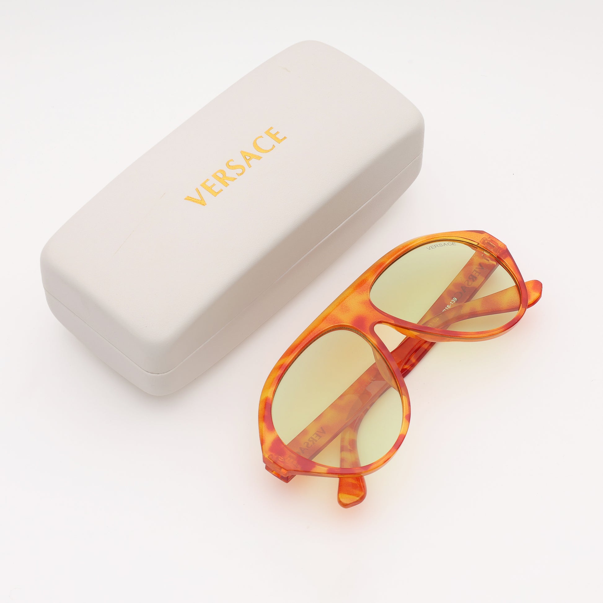 Make every glance a statement with the Versace Amber Blaze Sunglasses. Designed with a bold orange-marble frame and soft yellow-tinted lenses, these shades blend retro charm with contemporary flair. The lightweight structure ensures comfort, while the golden hue adds an instant pop of warmth and confidence to your look. Perfect for those who like their accessories with attitude.